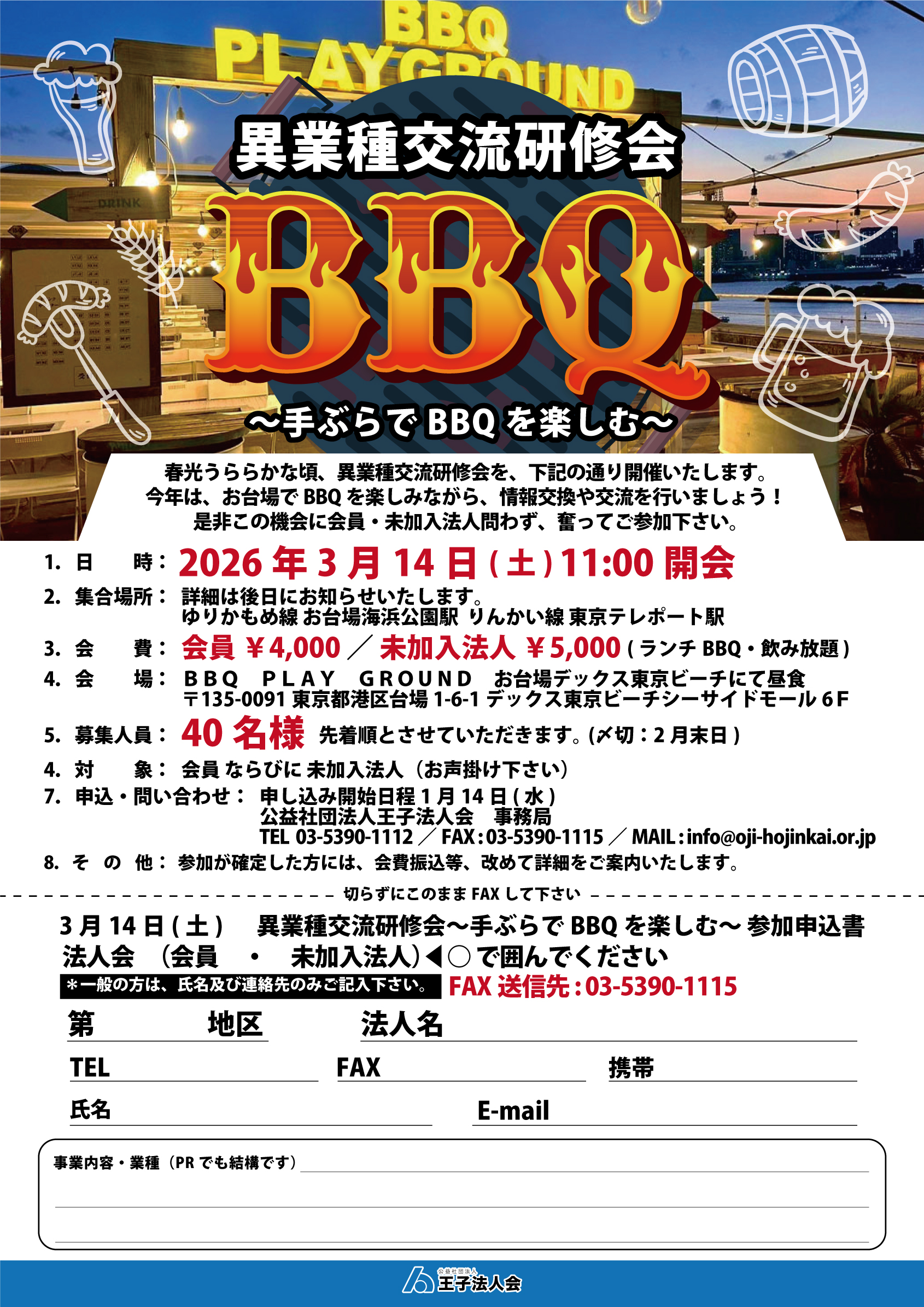 今年は、お台場でBBQを楽しみながら、情報交換や交流を行いましょう!