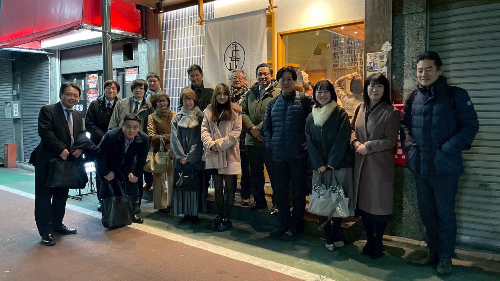当地区恒例の忘年会を「スシとおでんほたる」(東京都北区赤羽)で開催しました。18名が参加し、おいしいお寿司とおでんを堪能しました。その後、当地区会員のスナックMARS(東京都北区昭和町)に移動して二次会を実施。遅くまでカラオケなどを行い、会員の親睦を深めました。