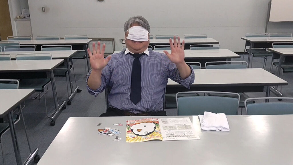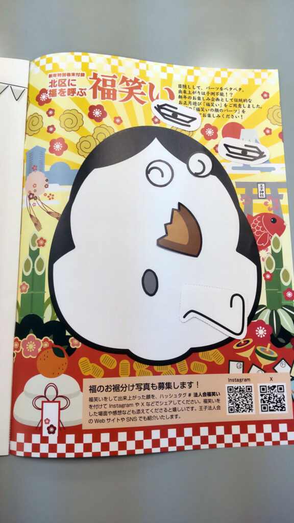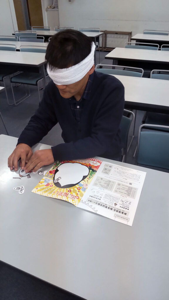 定例会議後、広報誌2026年1月号に掲載した「福笑い」に挑戦しました。