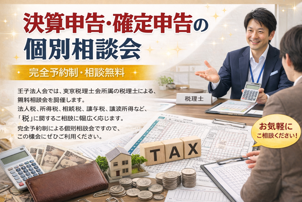 税制・税務委員会からのご案内です。 王子法人会では、東京税理士会所属の税理士による、無料の個別相談会を開催します。法人税、所得税、相続税、贈与税、譲渡所得など、「税」に関するご相談に幅広く応じます。完全予約制の個別相談会 […]