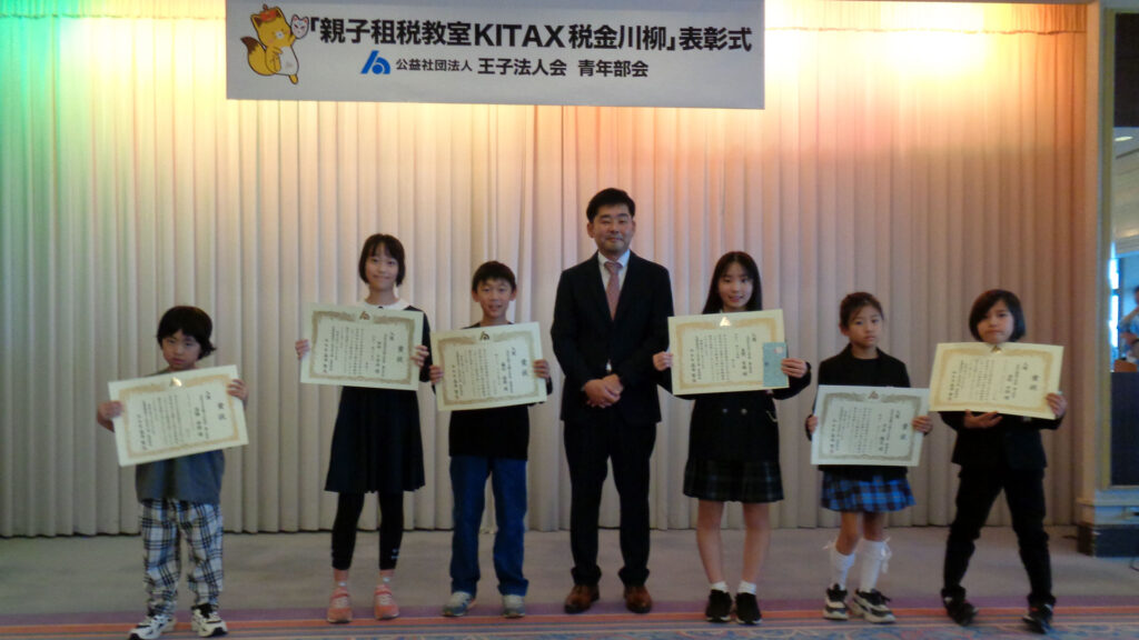 青年部会は11月29日、北とぴあ(東京都北区王子)にて、親子租税教室KITAX(きたっくす)税金川柳の優秀作品を表彰しました。
