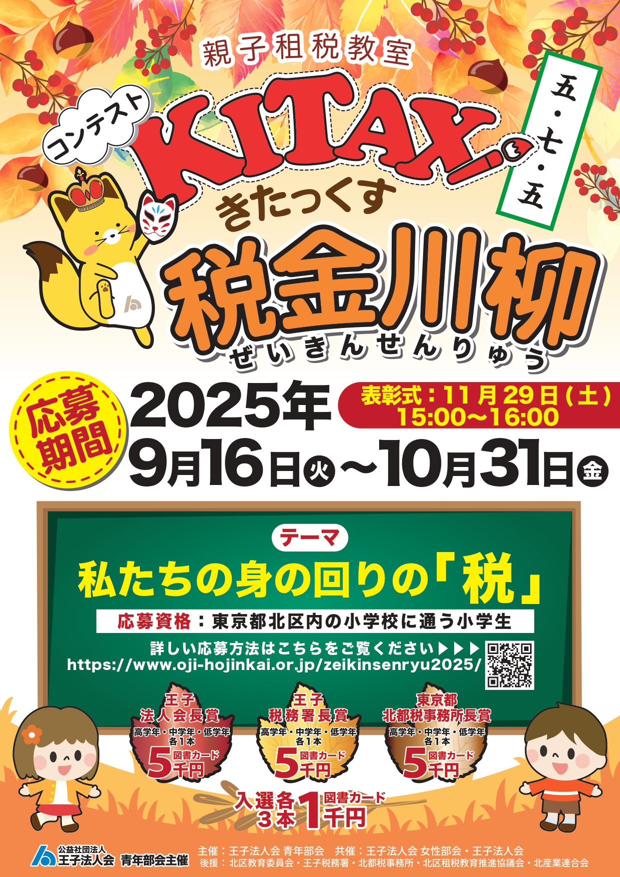 王子法人会サイト管理者 さんが新しい投稿「【応募受付中】親子租税教室KITAX(きたっくす)税金川柳コンテスト2025」を公開しました。 3か月前